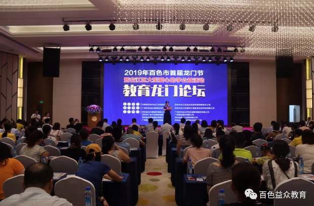 2019年6月16日下午,百色市首屆龍門節(jié)暨右江區(qū)大型愛心助學(xué)第一場公益活動—教育龍門論壇的舉行,拉開了百色市首屆龍門節(jié)公益活動的帷幕。本次論壇由共青團(tuán)百色市右江區(qū)委員會、百色市右江區(qū)益眾投資經(jīng)營有限責(zé)任公司聯(lián)合主辦,百色市右江區(qū)博學(xué)匯智教育培訓(xùn)學(xué)校有限公司、廣西百色益眾教育投資有限公司聯(lián)合承辦。教育無小事,論壇也得到了各級領(lǐng)導(dǎo)的極大重視。右江區(qū)區(qū)委常委、組織部部長張彩昊,右江區(qū)人民政府辦公室副主任譚再規(guī),右江區(qū)教育局副局長蔣傳剛,共青團(tuán)百色市右江區(qū)委員會副書記姚賢玉,百色市右江區(qū)益眾投資經(jīng)營有限責(zé)任公司總經(jīng)理趙家臣參加了本次論壇。參加本次論壇的還有右江區(qū)10所小學(xué)的校長、學(xué)校代表。論壇得到了家長熱烈歡迎,到場家長約500人。