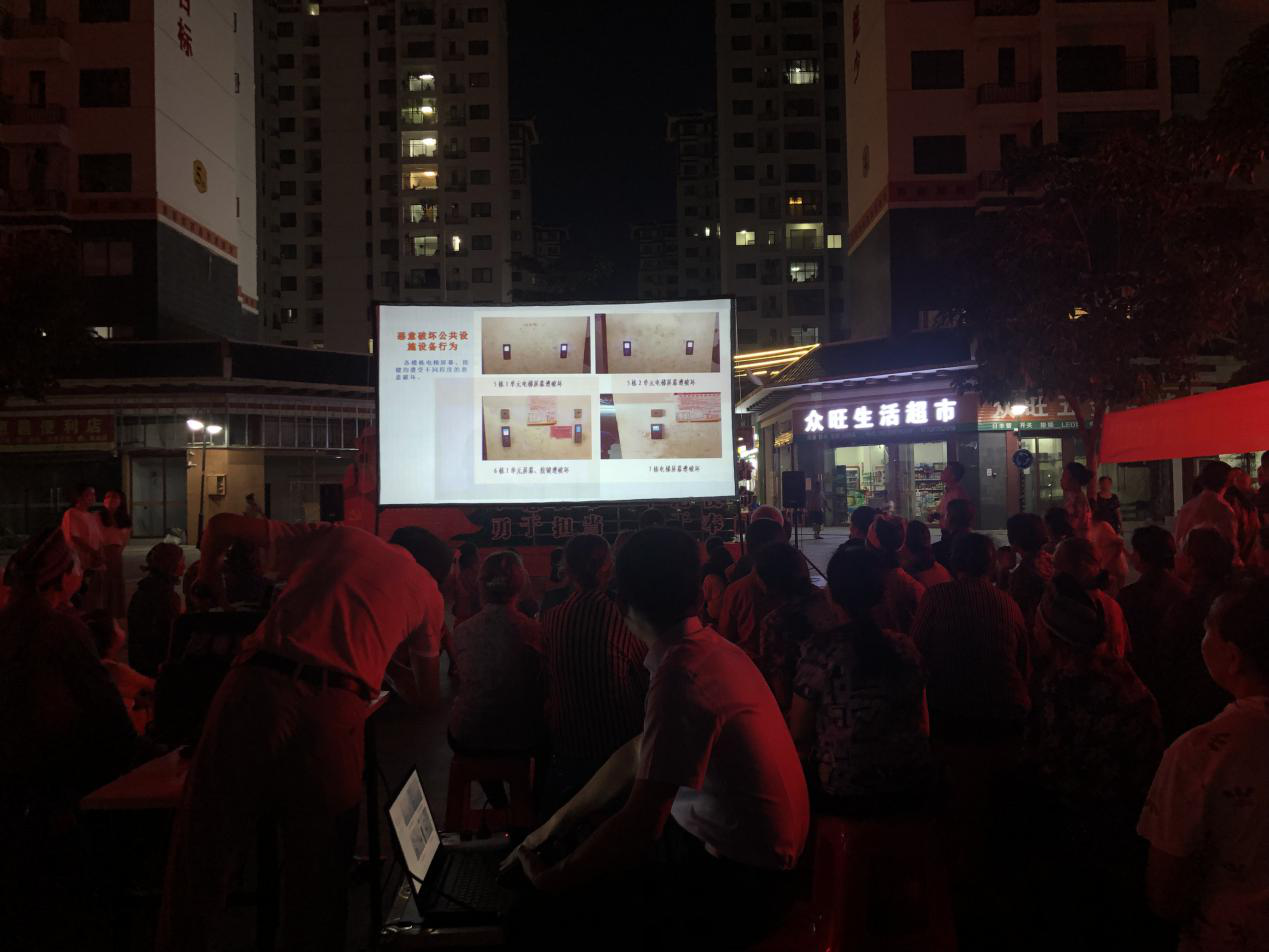 ????????活動開展期間,益眾物業(yè)公司工作人員用壯話為業(yè)主講解小區(qū)存在的不文明現(xiàn)象,講解相關(guān)文明知識,指出生活上因違規(guī)操作導(dǎo)致的安全問題等?;顒油ㄟ^播放文明行為宣傳片,公示生活中存在的不文明行為等方式全面深入向業(yè)主普及文明知識。