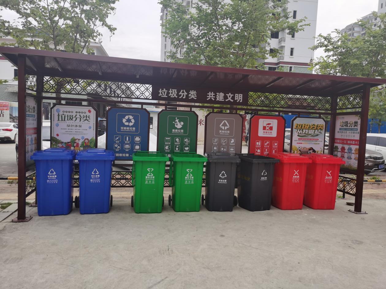 ???????益眾物業(yè)公司在小區(qū)外圍設置垃圾分類試點2個,投放分類垃圾桶16個。垃圾回收站內設置了可回收垃圾收集箱、有害垃圾收集箱、廚余垃圾收集箱等,居民前來投放垃圾可按垃圾類型進行細分。