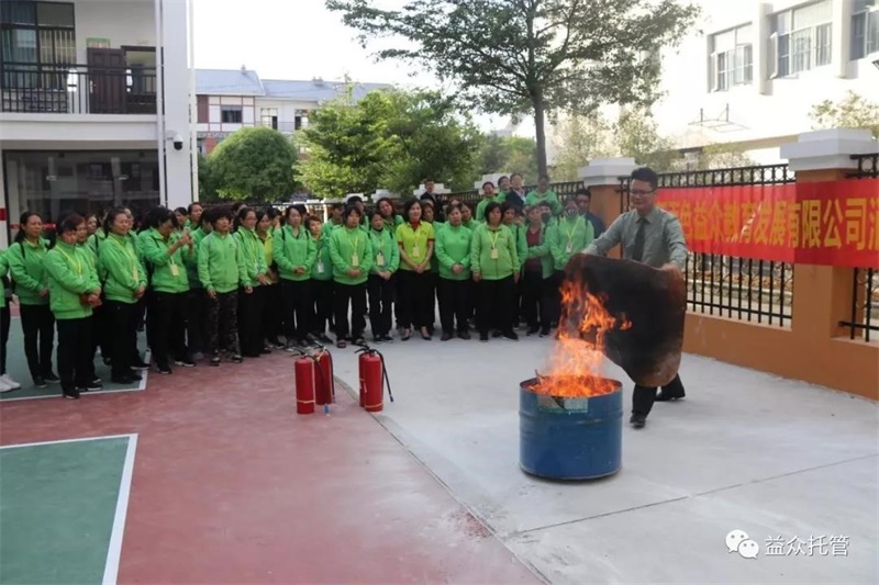 ? ? ? ?為進一步提高員工消防安全防范意識,增強員工對突發(fā)火災的應急處置能力,根據(jù)《廣西百色益眾教育發(fā)展有限公司2018年消防宣傳月活動方案》安排,2018年11月8日,廣西百色益眾教育發(fā)展有限公司聯(lián)合百色市市安防火中心在我司承接托管業(yè)務的百色市第一小學校區(qū)開展了"防災減災進校園 ?自防自救保安全"消防安全培訓活動。本次活動結(jié)合近年來發(fā)生的典型火災案例,將消防知識和學校、學生安全緊密聯(lián)系起來,深入剖析了火災案例的教訓并詳細的講解了火災類型、火災成因、火災最佳處置時機、應急疏散跟自救逃生方法、各類滅火器材的使用等消防知識。為加深廣大員工對理論知識的理解,讓防災減災意識"入腦入心",本次活動還相應開展了現(xiàn)場初期火災處置演練。通過本次活動,廣大員工的消防安全意識得到了進一步提高,應急疏散和避險能力有了質(zhì)的飛躍,為我司更好的為學校、學生提供貼心服務打下了良好的基礎。